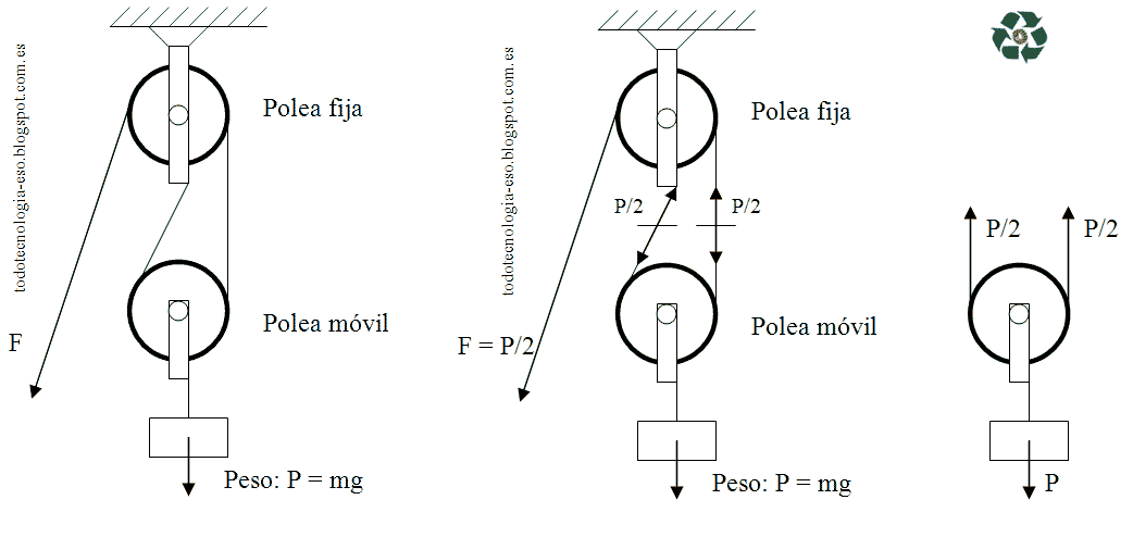 Retomado desde:https://todotecnologia-eso.blogspot.mx/2014/03/maquinas-simples-ii-la-rueda-la-polea-y.html